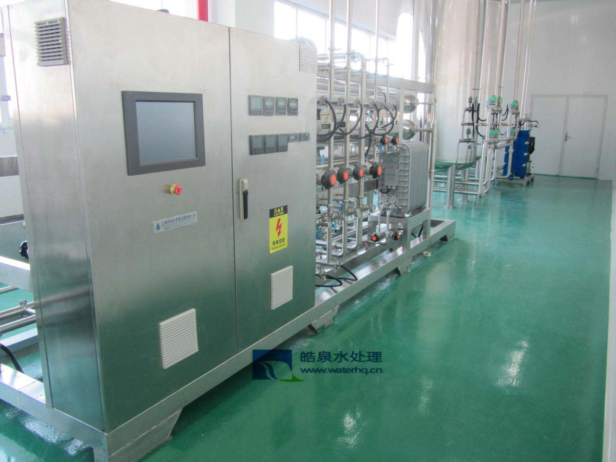 采用預處理、反滲透技術、超純化處理以及后級處理等方法,將水中的導電介質幾乎完全去除,又將水中不離解的膠體物質、氣體及有機物均去除至很低程度的水處理設備。